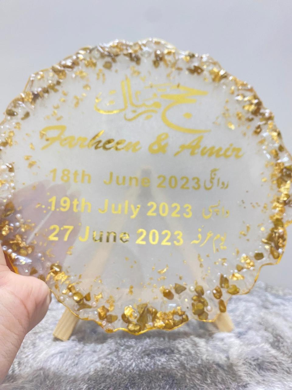 Celebrate the spiritual milestone of Hajj with this beautiful, personalized Hajj Mubarak Plaque. This unique piece is a heartfelt tribute to a blessed journey, serving as a permanent reminder of the pilgrimage.