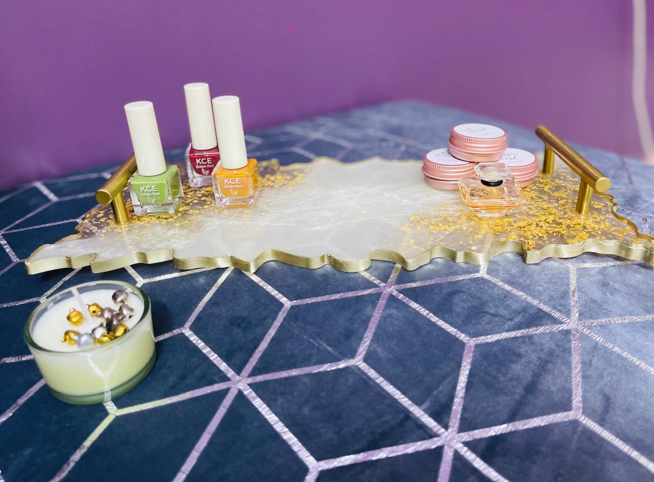 Ideal as a vanity tray, it’s perfect for organizing your perfumes, makeup, and skincare products. It also serves as a beautiful jewelry tray or a decorative accent for your coffee table, bathroom counter, or dresser. A must-have for anyone who appreciates modern, handmade design.